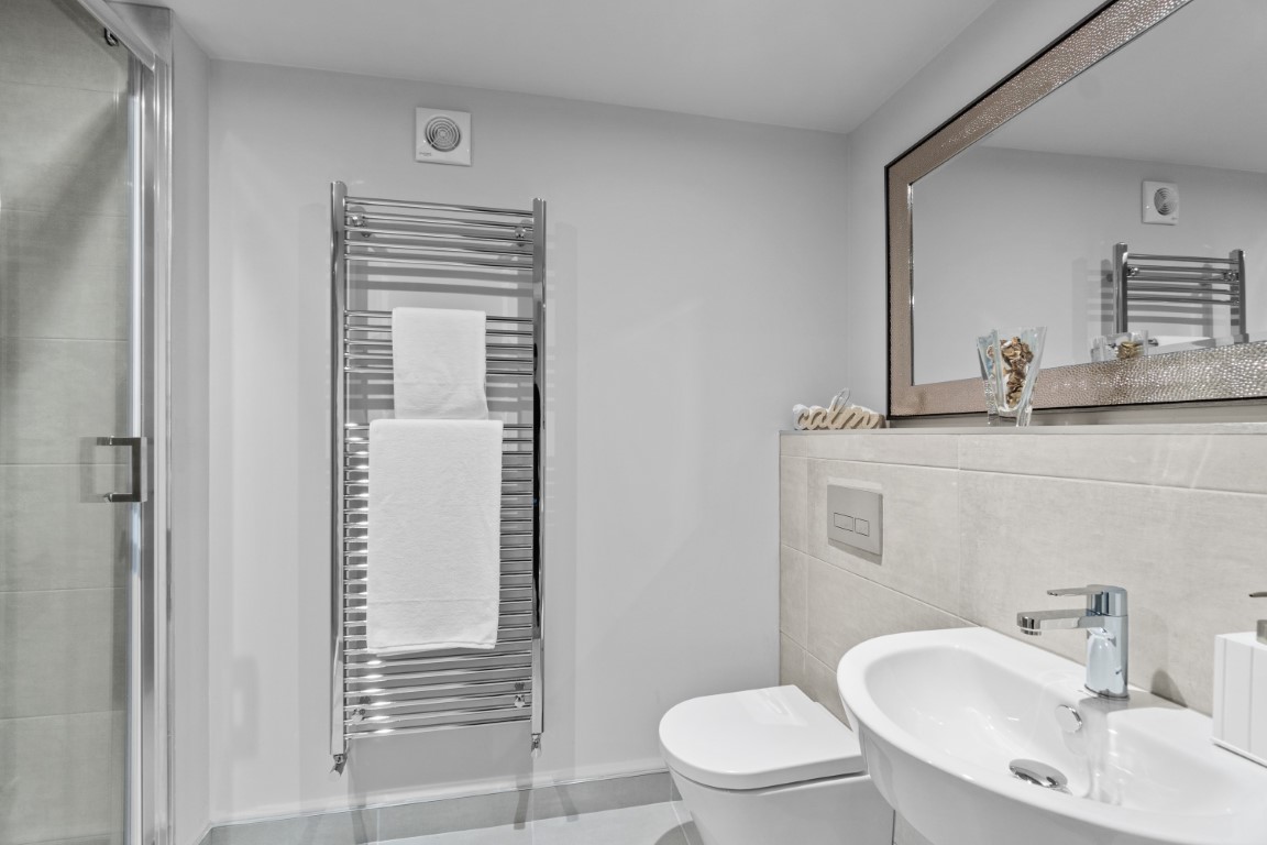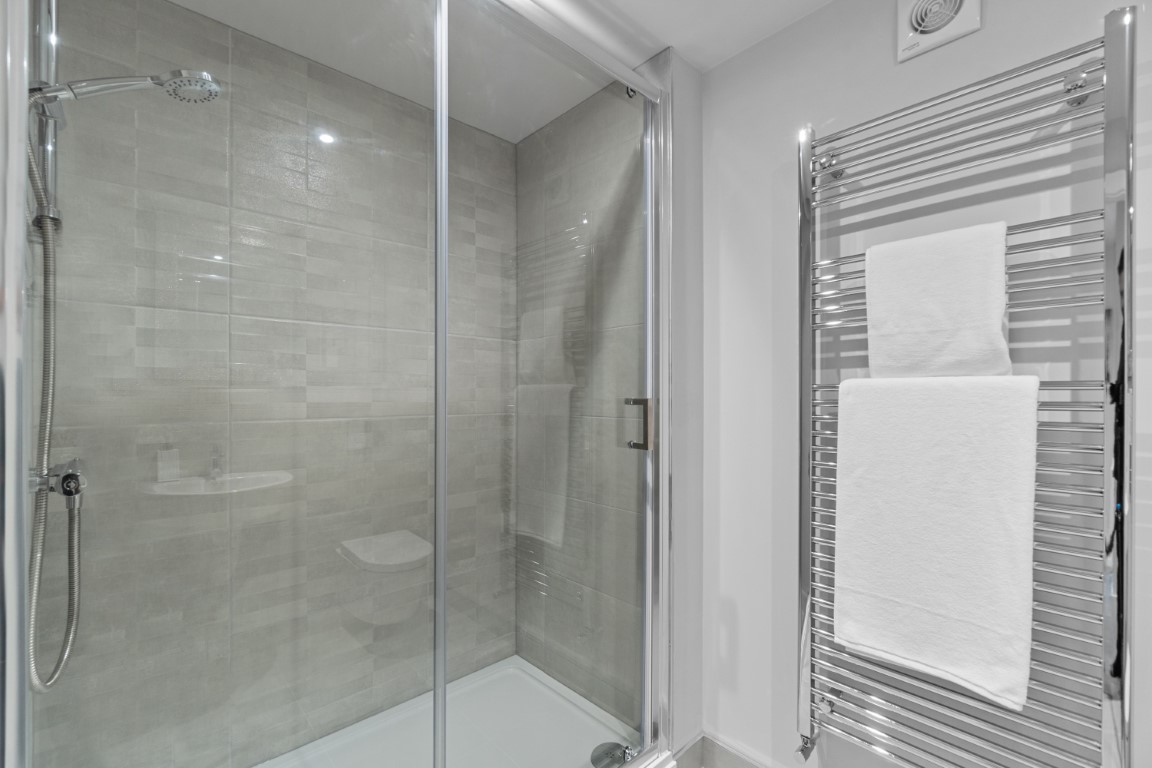 Offering 2 large bedrooms which are fully furnished with a double bed, a desk, a chest of drawers, a wardrobe, a Smart TV, and a bedside table. Furthermore, there is also a luxury bathroom with a walk-in shower.